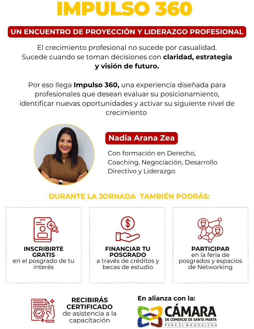 Jueves, 7 de mayo, a partir de las 4:30 p.m. En el Auditorio de la Cámara de Comercio de Santa Marta. Asegura tu lugar: