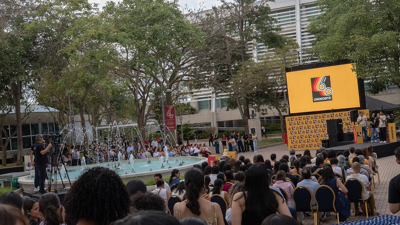 Después del lanzamiento del modelo educativo, la comunidad universitaria se dio cita en la fuente de la Rectitud, Alegría y Verdad para participar en la celebración del cumpleaños de la Universidad del Norte.