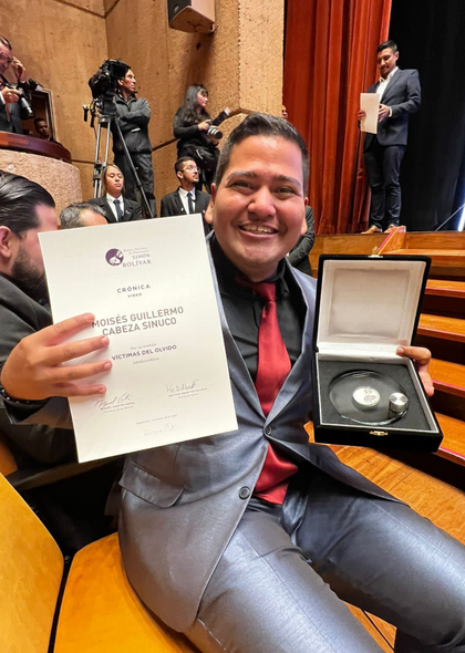 Moisés Guillermo Cabeza Sinuco, egresado del programa de Comunicación Social y Periodismo de la Universidad del Norte (2019) y actualmente comunicador audiovisual y periodista del Periódico Vanguardia, fue distinguido en la Categoría de Crónica en video, con el proyecto documental Víctimas del Olvido, el cual relata la historia de la violencia ejercida por los paramilitares en el corregimiento de Riachuelo, municipio de Charalá, en donde niños y niñas fueron las principales víctimas del conflicto armado. Esto con el objetivo de darle voz a las víctimas y sus familias para que lo ocurrido no tenga repetición.