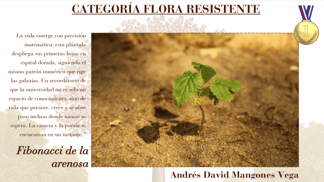 Los Premios de la Fotomaratón resaltaron esta vez la mirada fotográfica de 101 participantes, entre estudiantes, profesores, egresados y administrativos sobre la fauna, flora y paisajes que rodean a la Universidad del Norte. En esta competencia se destacaron las siguientes categorías y ganadores: Flores que resisten, con Andrés David Mangones (Fibonacci de la arenosa, 1er puesto), Franchesca Ceballos (Entre púrpura y rocío, 2do puesto) y Jesús Villanueva (Cascarón vacío, 3er puesto); Fauna que resiste, con Ignacio José Acuña (Oro en la hierba, ganador); y Paisajes en transformación, con Carolina Puche como ganadora.