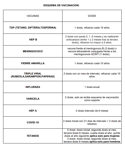 Los admitidos a las especializaciones médico quirúrgicas, deben cumplir con los requisitos del siguiente esquema de vacunación.