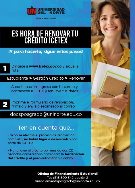 Ante esta eventualidad, deberá comunicar la situación por escrito al equipo de Posgrados de la Oficina de Financiamiento Estudiantil, de modo que podamos proceder a solicitar la anulación del crédito a la oficina principal del ICETEX para que no se genere ningún tipo de cobro.