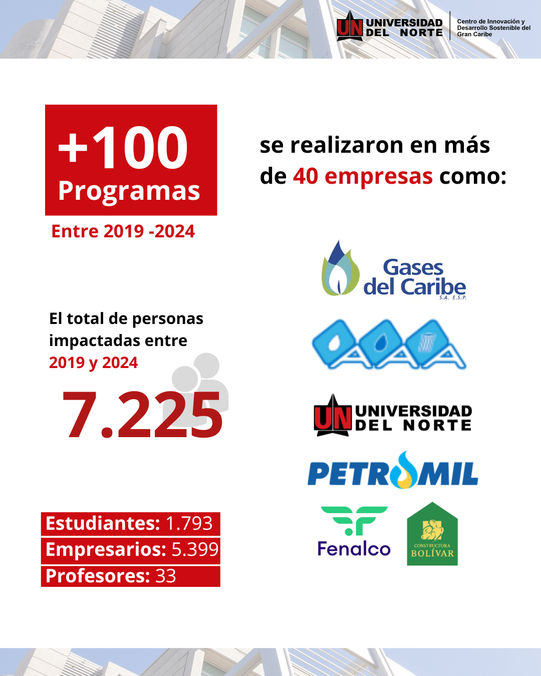 Se desarrollan eventos de educación continuada que impulsan el desarrollo sostenible en la región. Se fortalece la innovación y la infraestructura empresarial con cursos, foros y publicaciones (ODS 9). Se promueve el consumo y la producción responsable mediante visitas de sostenibilidad, paneles y webinars (ODS 12). Además, se fortalece el crecimiento económico y el empleo de calidad a través de talleres, seminarios y programas de emprendimiento (ODS 8). Finalmente, se consolidan alianzas estratégicas con macrorruedas de negocios, concursos de casos y encuentros académicos internacionales (ODS 17).