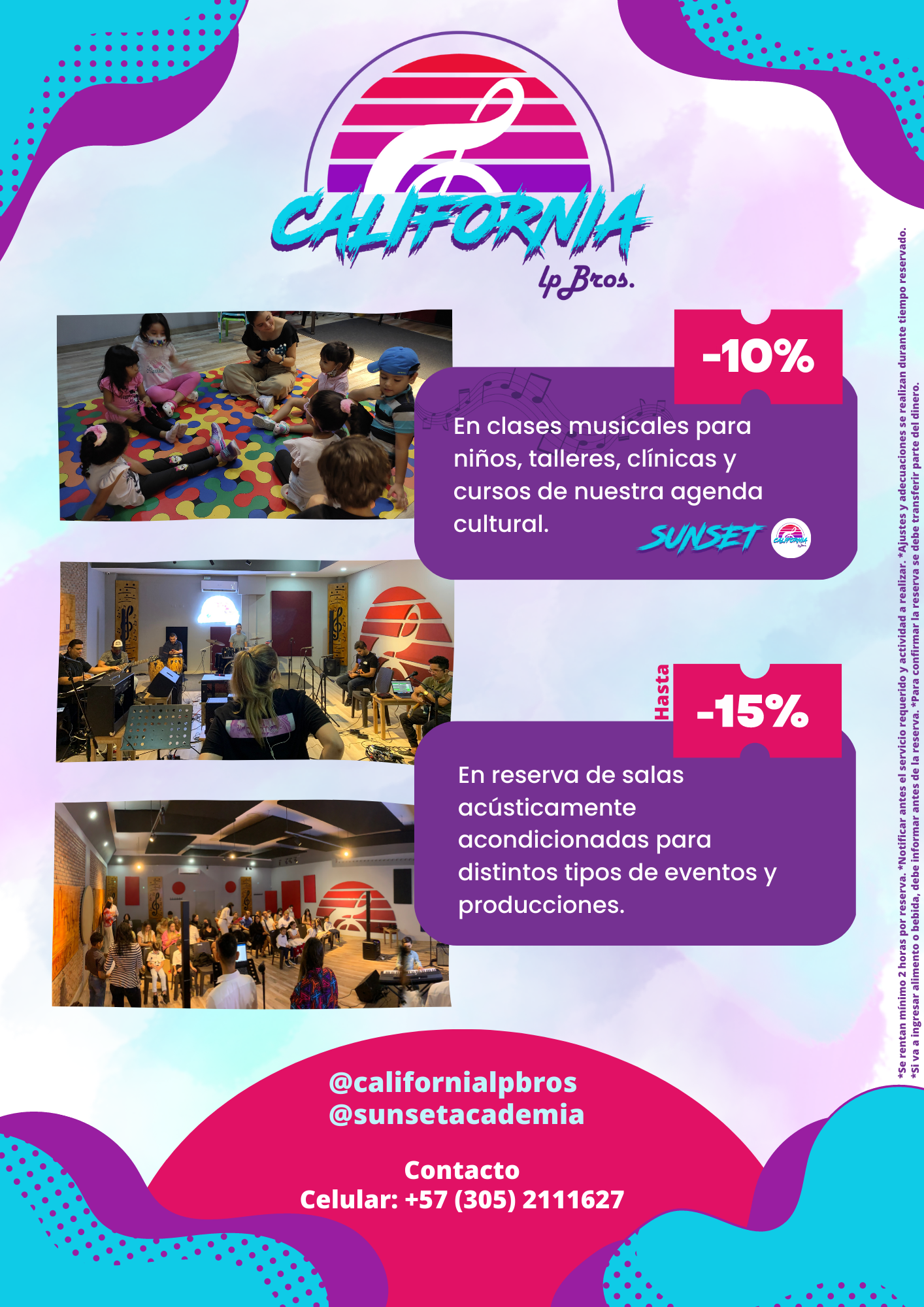 10% de descuento en clases musicales para niños, talleres y cursos de la agenda cultural.