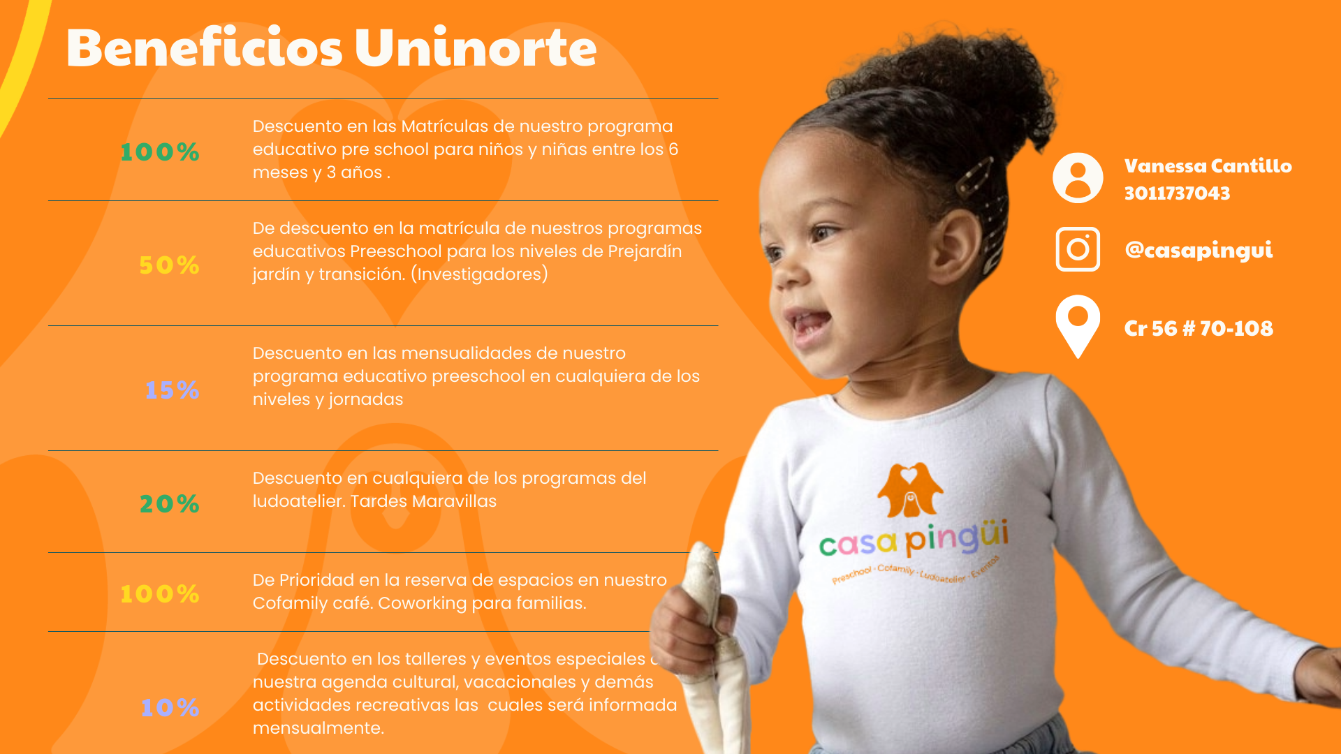 - 8% en pensión mensual en Barranquilla y Puerto Colombia (Incluye merienda)