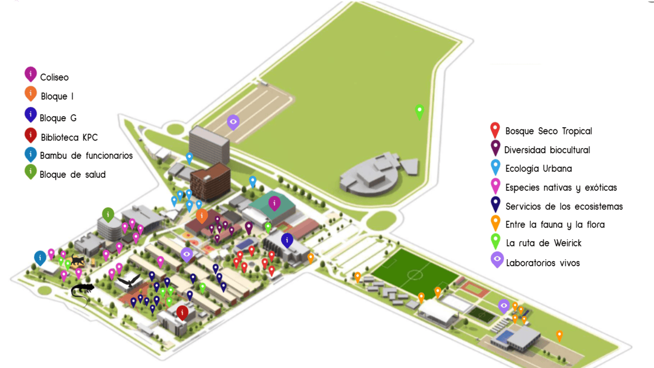 Los recorridos guiados del museo vivo se dividen en ocho rutas temáticas que abordan aspectos como el bosque seco tropical, los árboles como reguladores climáticos, la ecología urbana, la diversidad biocultural, los servicios ecosistémicos y las especies nativas y exóticas de la región. Estas actividades permiten que profesores, estudiantes, funcionarios y visitantes externos reconozcan la importancia de la sostenibilidad en los entornos urbanos.