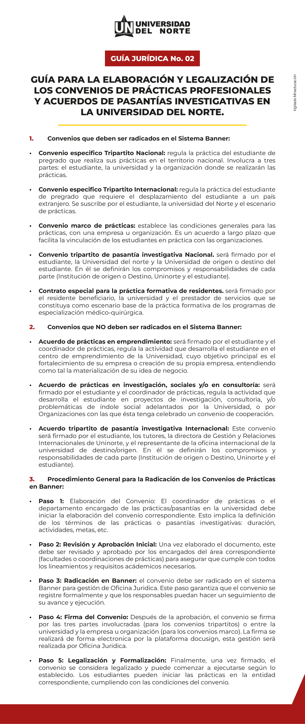 Guía para la elaboración y legalización de los convenios de prácticas profesionales y acuerdos de pasantías investigativas en la Universidad del Norte