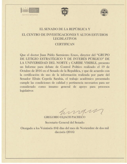 El control a la Administración Pública, a la conformación de entidades públicas y de los contratos administrativos puede posicionar a la Universidad y al Grupo como veedores ciudadanos de alta calidad. Si bien la Ley 1425 de 2010 derogó los incentivos económicos de estas acciones, y sus pretensiones se proyectan a favor del interés nacional, regional o local, y provoquen revisiones judiciales de procesos de selección de los contratistas, y en general, permita garantizar la trasparencia en la Administración Pública.